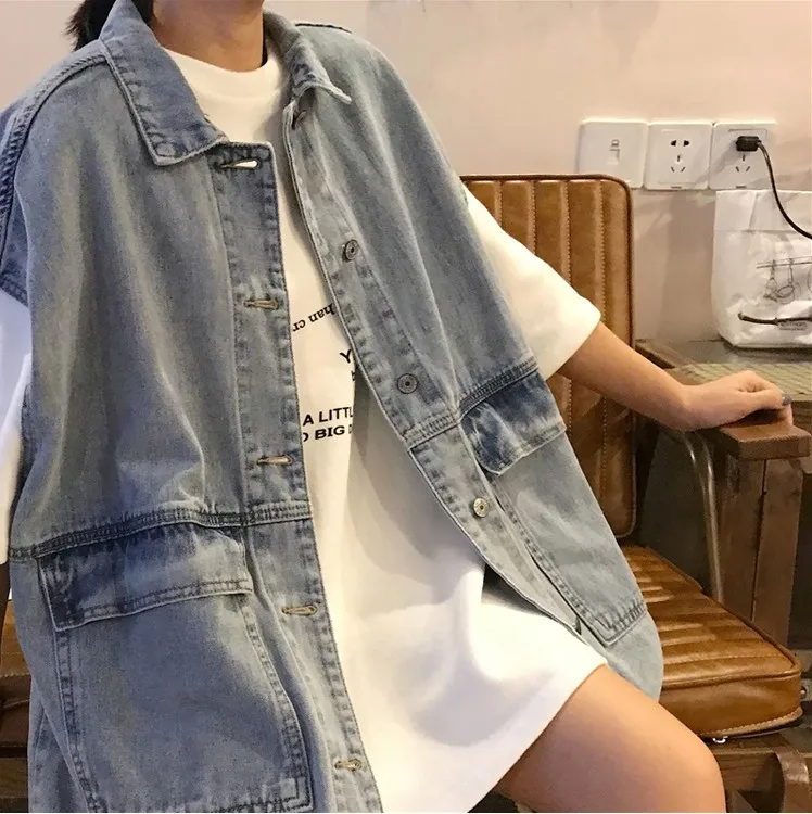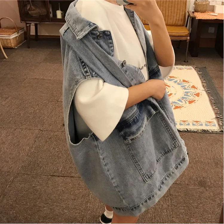 [EWQ] 2020 весна осень новый короткий с капюшоном без рукавов модный винтажный
