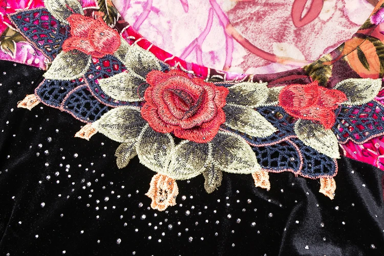 2019 осеннее бархатное платье больших размеров для женщин среднего возраста с длинными рукавами, Вышитое цветочным принтом, платья трапециевидные вечерние платья Elbise C61