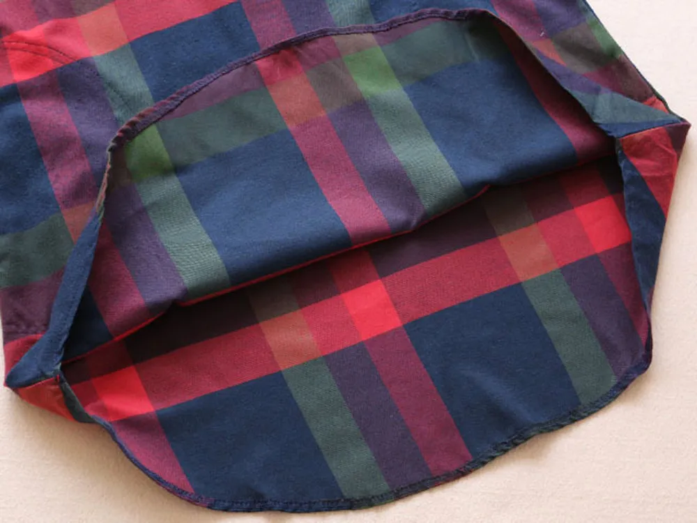 Women Dress Ladies Plaid Long Sleeve Dress Loose Pocket Round Neck Swing Vintage Plus Size S-5XL Casual Vintage Women Dress