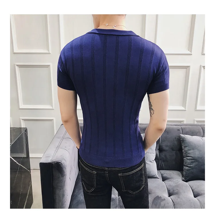 Мужская рубашка-поло с v-образным вырезом, лето 2019, мужская деловая Повседневная дышащая полосатая рубашка-поло с коротким рукавом, хлопковая одежда, поло, 179