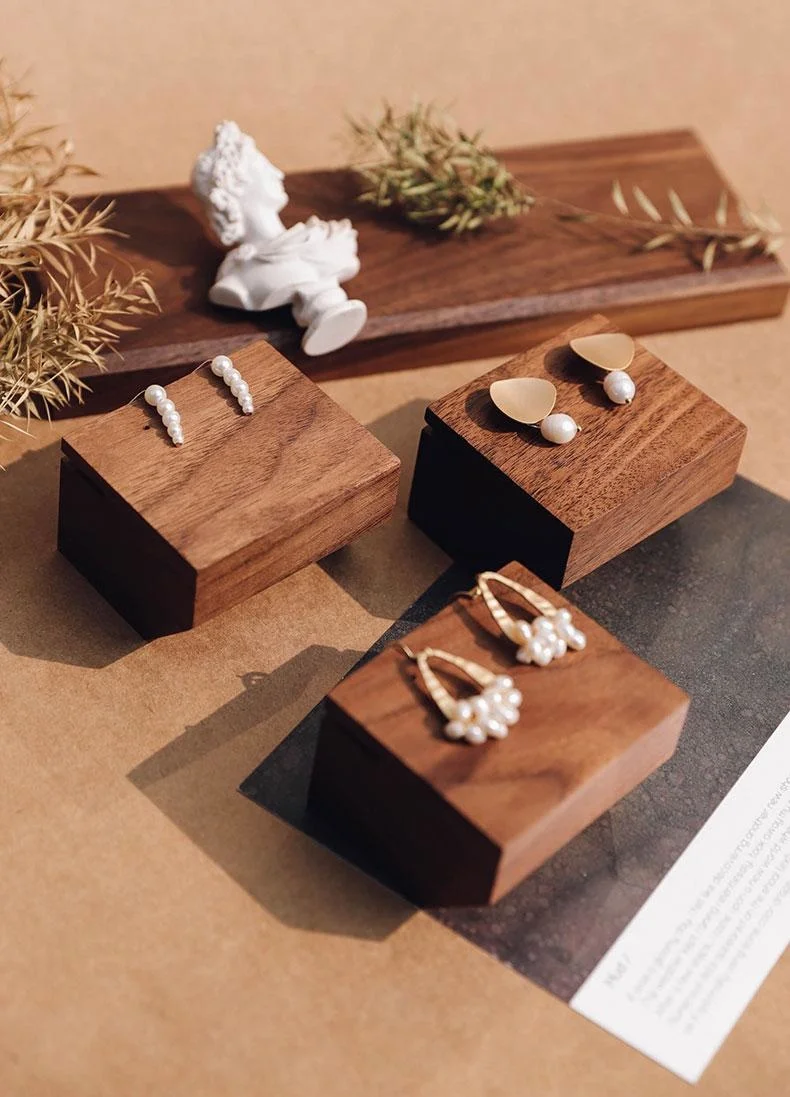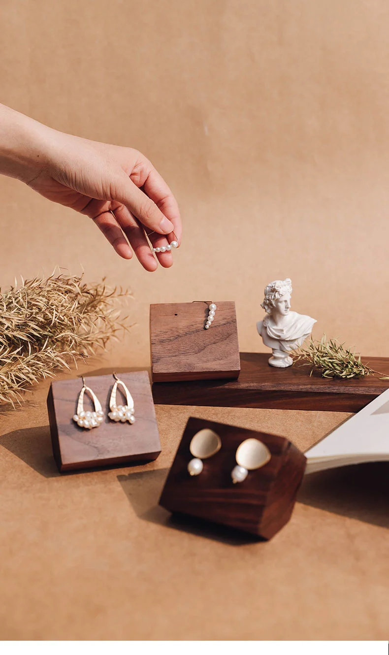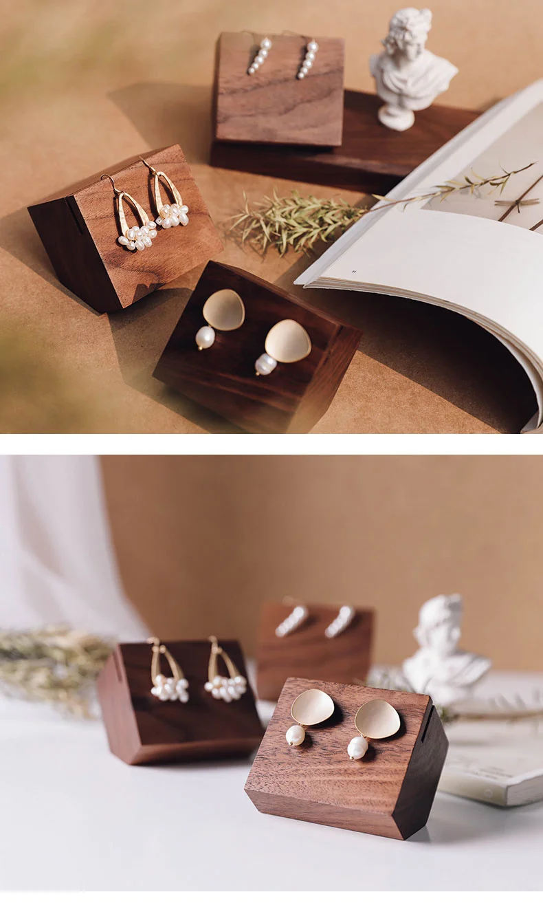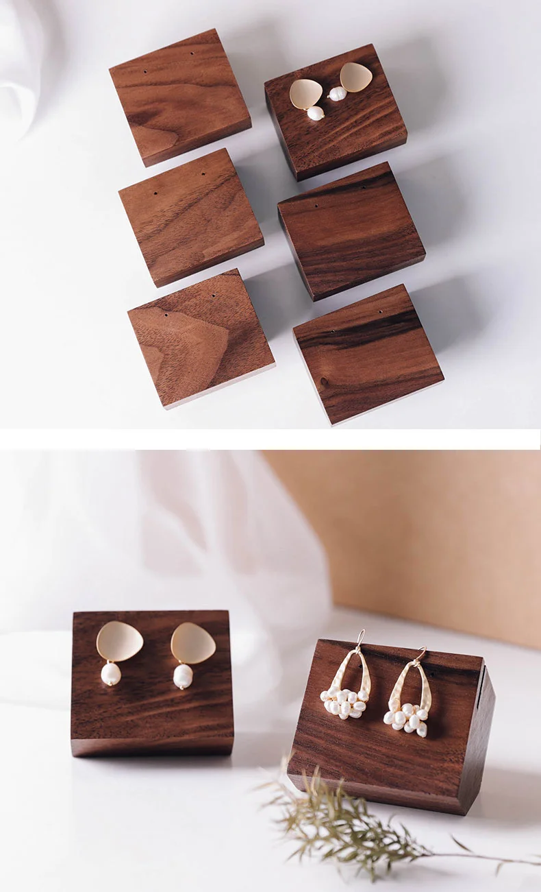 Простой ореховый стеллаж для ювелирных изделий, серьги, уши, гвозди, дисплей, деревянный блок, держатель для фото, серьги, дисплей, блок, подставка, базовый держатель для ожерелья