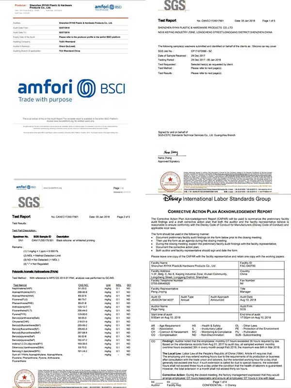 Наша компания завоевала много сертификатов, таких как ISO9001, BSCI, SGS и disney сертификации.