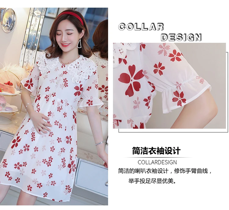 Chiffon Maternity Clothing Dresses Summer Floral Clothes Maternity Dresses Lady Loose Pregnancy Dress For Pregnant Women Vestido