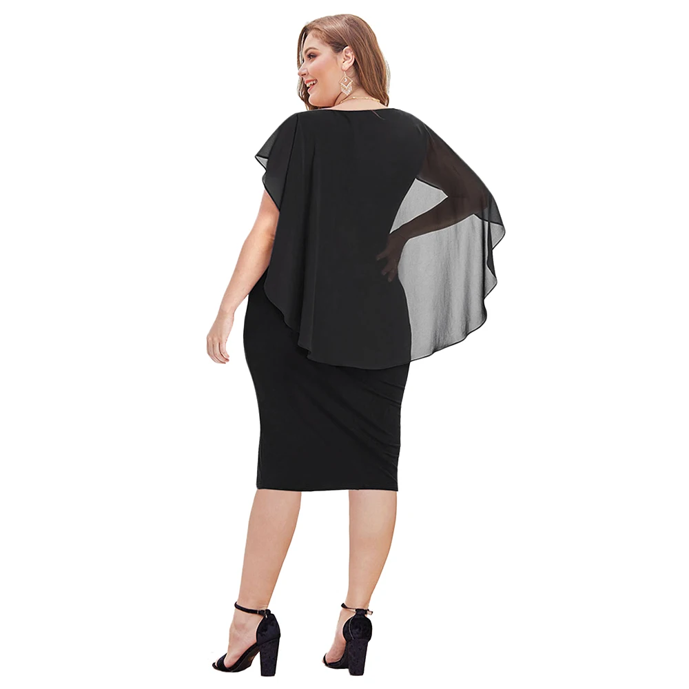 Wipalo Plus Size 5XL Women Sleeveless Scoop Neck Sheath Dress Capelet Knee Length Fitted Party Dress Rhinestone Overlay Vestidos