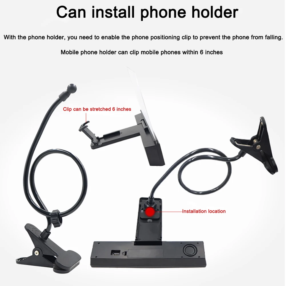 Совместимость: зажим для мобильного телефона может использоваться для крепления мобильных телефонов в пределах 6 дюймов