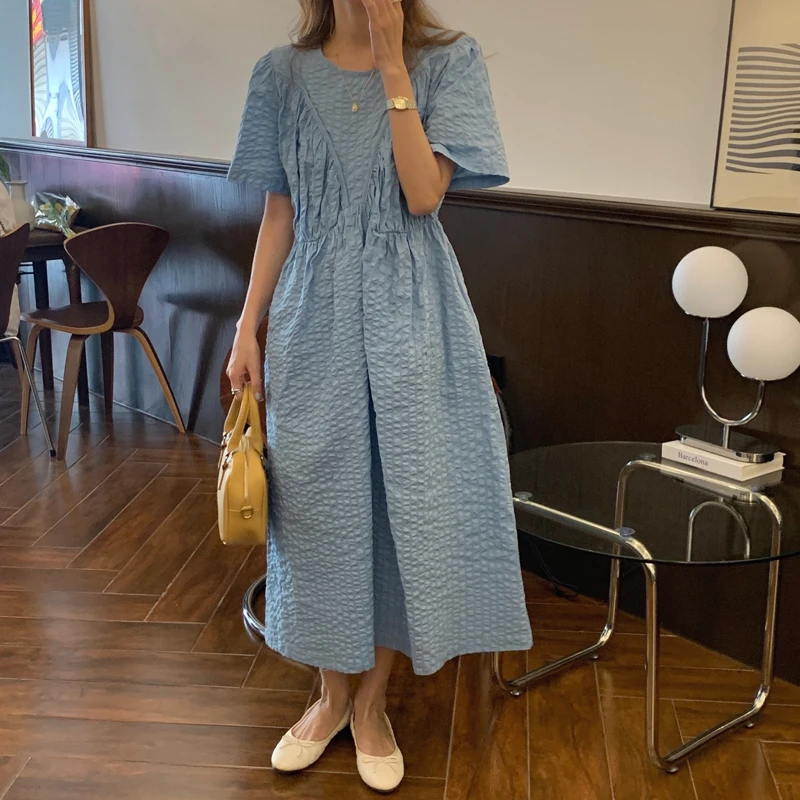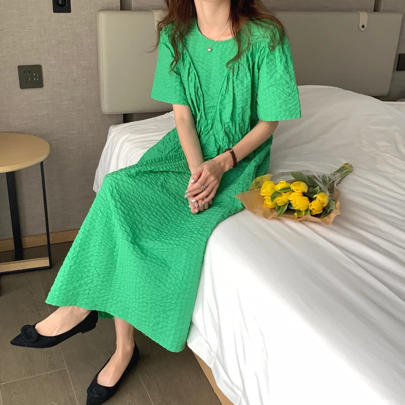 Женский сарафан средней длины повседневное свободное зеленое платье с пышными
