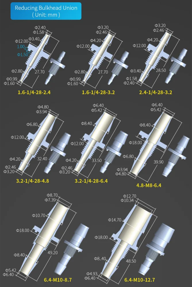 1.Мягкая трубка RUNZE, уменьшающая переборку = 1/4-28UNF, M8, M10 штекер + 1/4-28UNF, M8, M10 гнездовая гайка = ID1.0-12.7 мм Мягкая трубка = ПП или ПТФЭ материал, пожалуйста, выберите правильное сочетание для вашего применения.