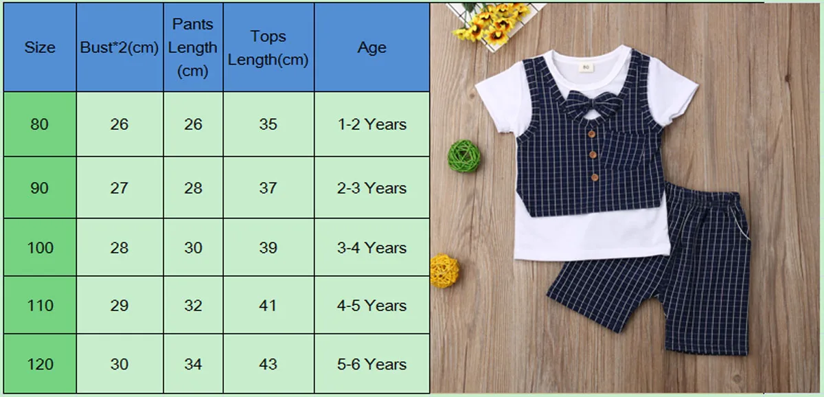 Новейшая модель;Джентльменская футболка для мальчиков; Топы + штаны; одежда! Высокое качество и абсолютно новый 100% Основной цвет: как на картинке Новинка в моде Материал: смешанный хлопокОбратите внимание: если ваш ребенок пухленький, мы рекомендуем выбрать больший размер, спасибо.Пожалуйста, перед покупкой ознакомьтесь с фактическим ростом вашего ребенка и таблицей размеров. Спасибо за понимание. Посылка включает в себя:1xТопы + 1 включает только брюки Таблица размеров: ![]()