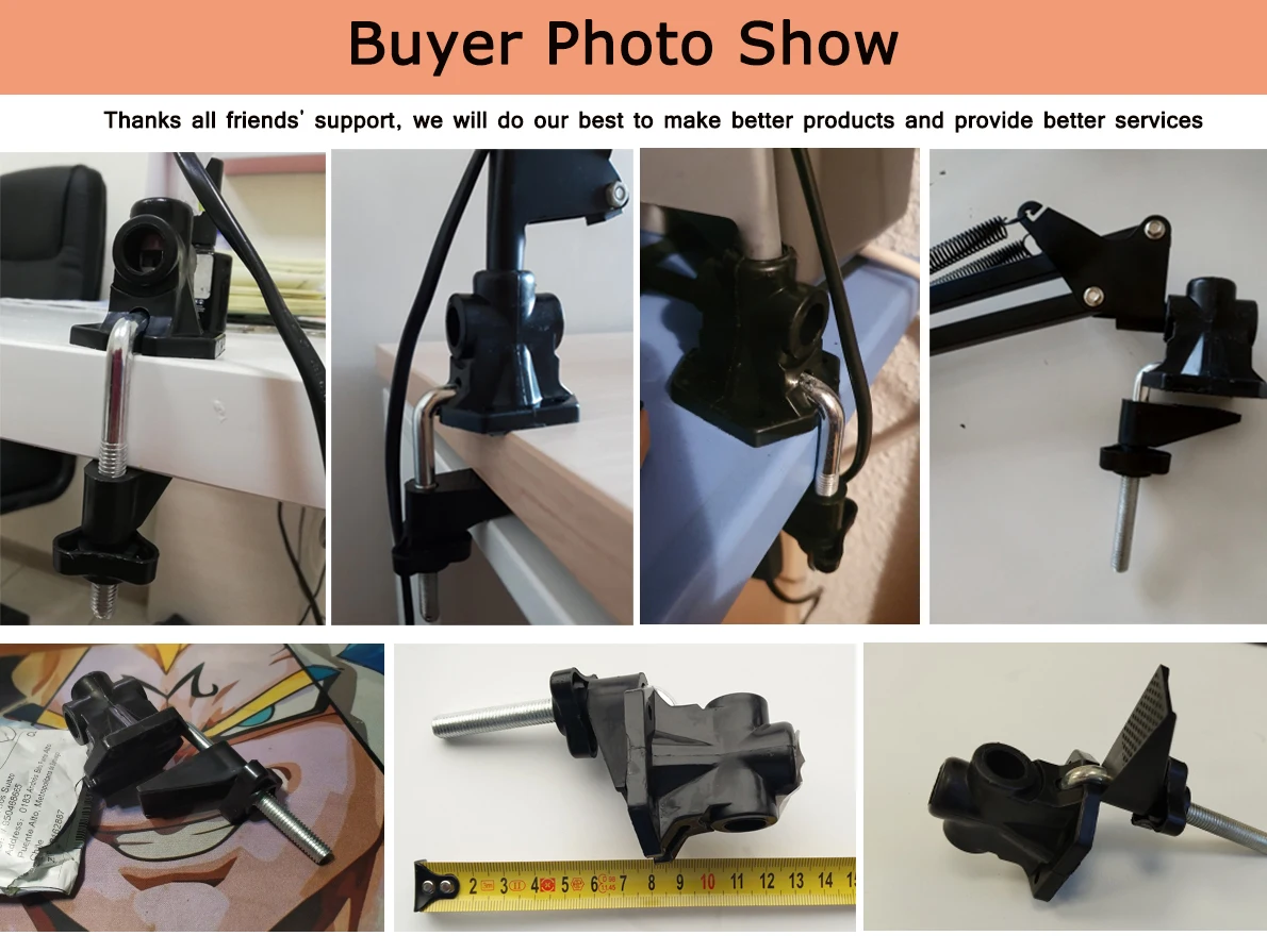 -Винтовой зажим легко снять и прикрепить! Без клея, беспорядка, мягких подушечек, расположенных на обоих концах зажима, защищает ваш стол или стол от повреждений.