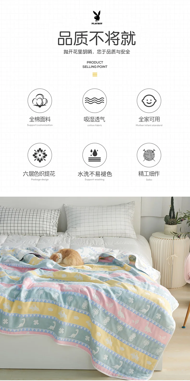 Особенности: 1. 100% хлопок, безопасный материал, не вредит ребенку 2, уход за кожей мягкий удобный, антисталевый, без Azo и низкий кадмий, низкий углерод 3, высокая абсорбируемость воды 4. В магазине, быстрая доставка, высокое качество, лучший сервис 5. Официальный уполномоченный дистрибьютор бренда Tado muslin, страхование качества Спецификация: 1, размер: 90*100 см (после растяжения) 2. Ткань: 100% муслиновый хлопок 3. Пряжа: 40s 4. Слой: 6 слоев s марли 5. Печать: печать покрытия 6. Стиль марли: скрученная пряжа 7, Вес: около 0,32 кг