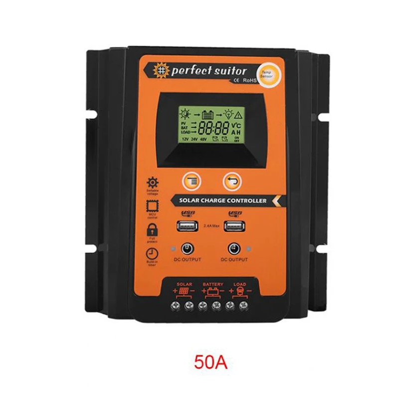 Контроллер заряда 12V24V Солнечный контроллер заряда солнечная панель регулятор батареи двойной Usb ЖК-дисплей Топ Quality-50A Другое: MPPT регулятором солнечного заряда Управление; автоматической идентификации системы напряжения, 12/24 V автоматическое распознавание. гуманный ЖК-дисплей и двойная кнопка работы интерфейса человека-машины. завершенные технические данные для настройки и изменения. высокая эффективность интеллигентая (ый) со слежением за максимальной точкой мощности, 3-ступенчатый режим зарядки. можно выбрать режим управления нагрузкой, функцию таймера можно сбросить на уличный светильник в ночное время.