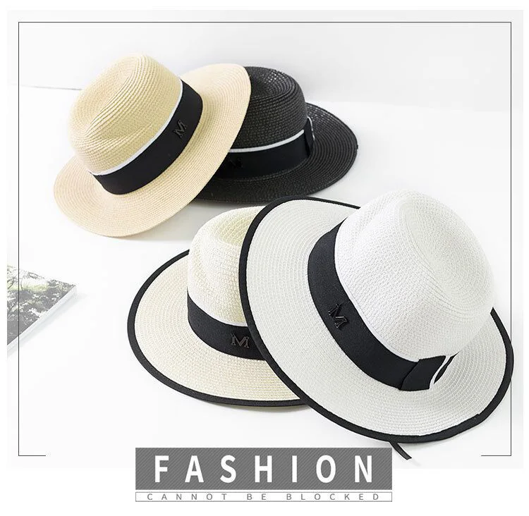 New Summer Sun Hats Women Fashion Girl Straw Hat Ribbon Bow Beach Casual Flat Top Panama Bone Feminino | Аксессуары для одежды