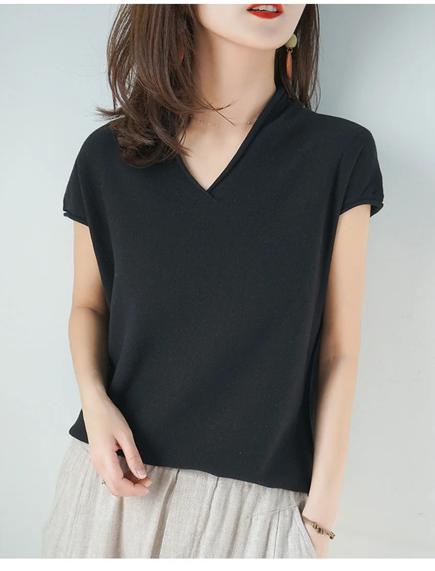 2021 корейские женские Свитер с воротником все-матч короткие футболки рукавами