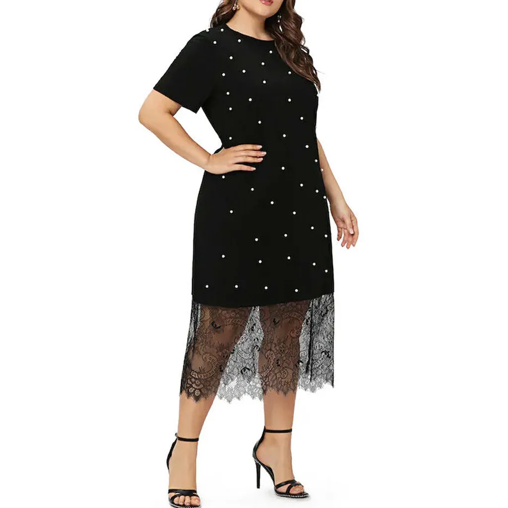 1. Особенности: модное женское платье большого размера, круглый вырез, короткий рукав, цветочный принт, кружевное платье.