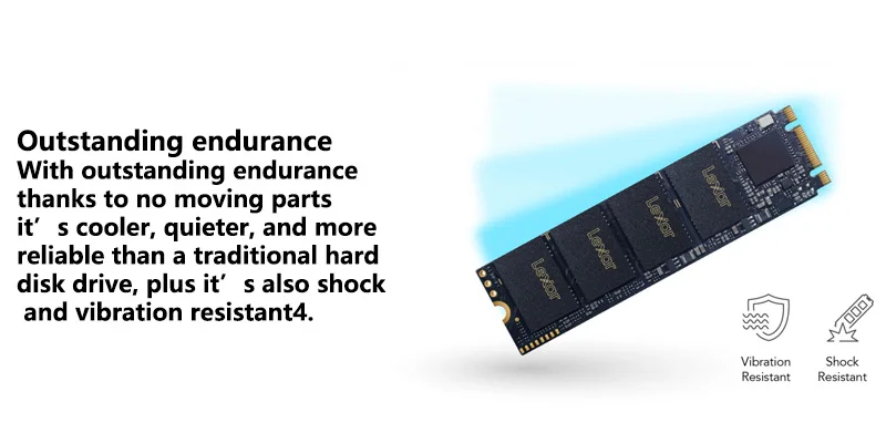 Выдающиеся выносливость Благодаря исключительной выносливости благодаря отсутствию движущихся частей он охладитель, тише и надежнее, чем традиционный жесткий диск, плюс это также шок и вибрация resistant4.
