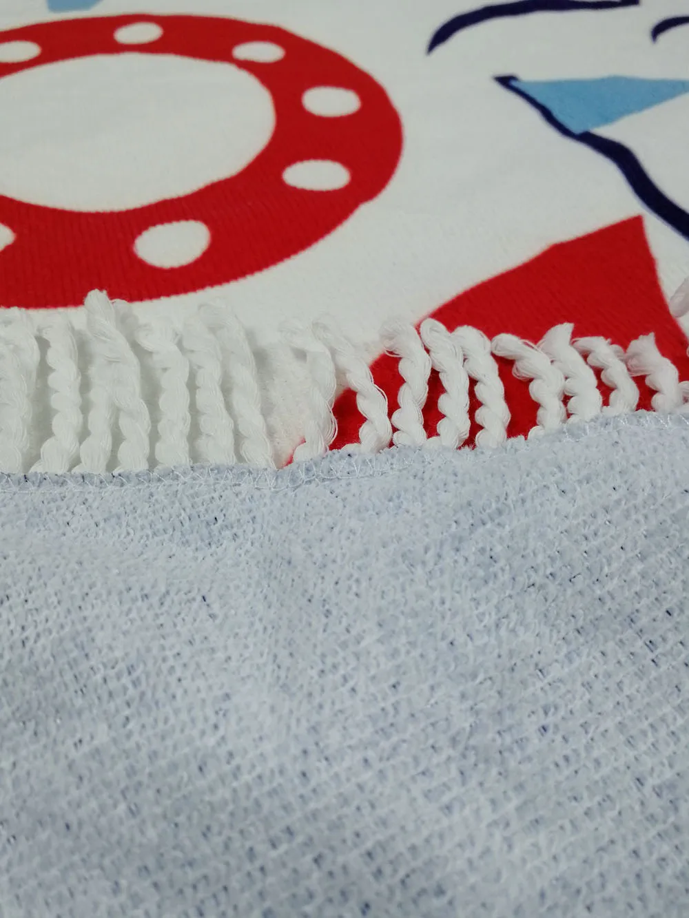 With fringe tassels on the edge.