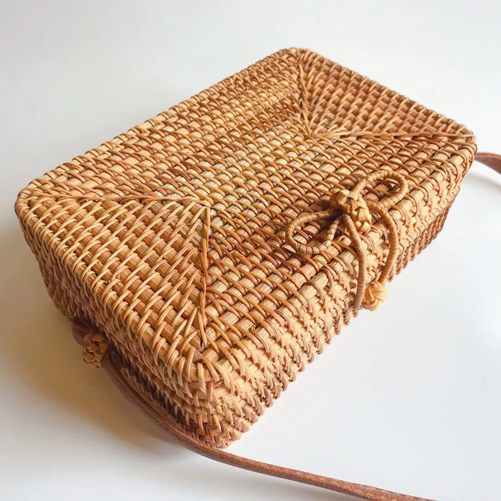 Круг ручной работы Бали прямоугольник Ретро ротанга Соломенная пляжная сумка через плечо