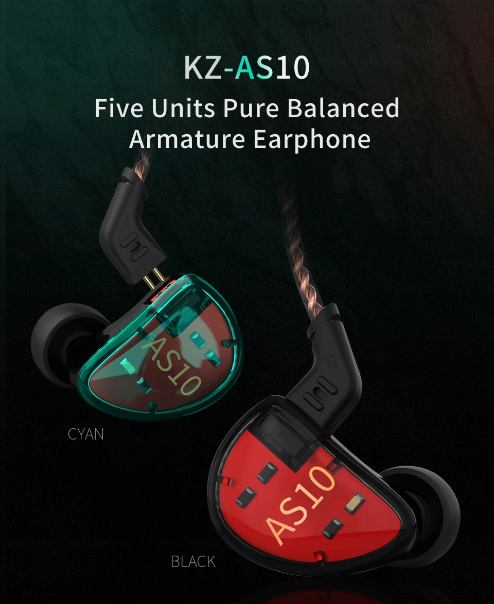 KZ AS10 5BA гарнитура балансирующая Арматура Наушники для ушей HIFI монитор с басом музыкальные наушники общие