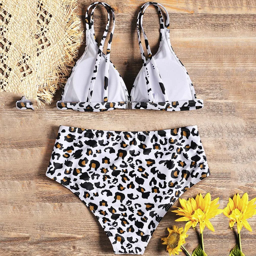 Женский Леопардовый бюстгальтер пуш-ап с подкладкой, пляжный комплект бикини, купальник, пляжная одежда, купальники