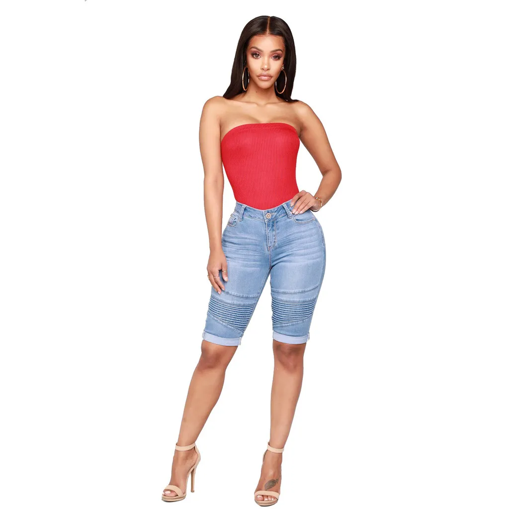 Женские эластичные джинсовые шорты до колена со средней посадкой на молнии