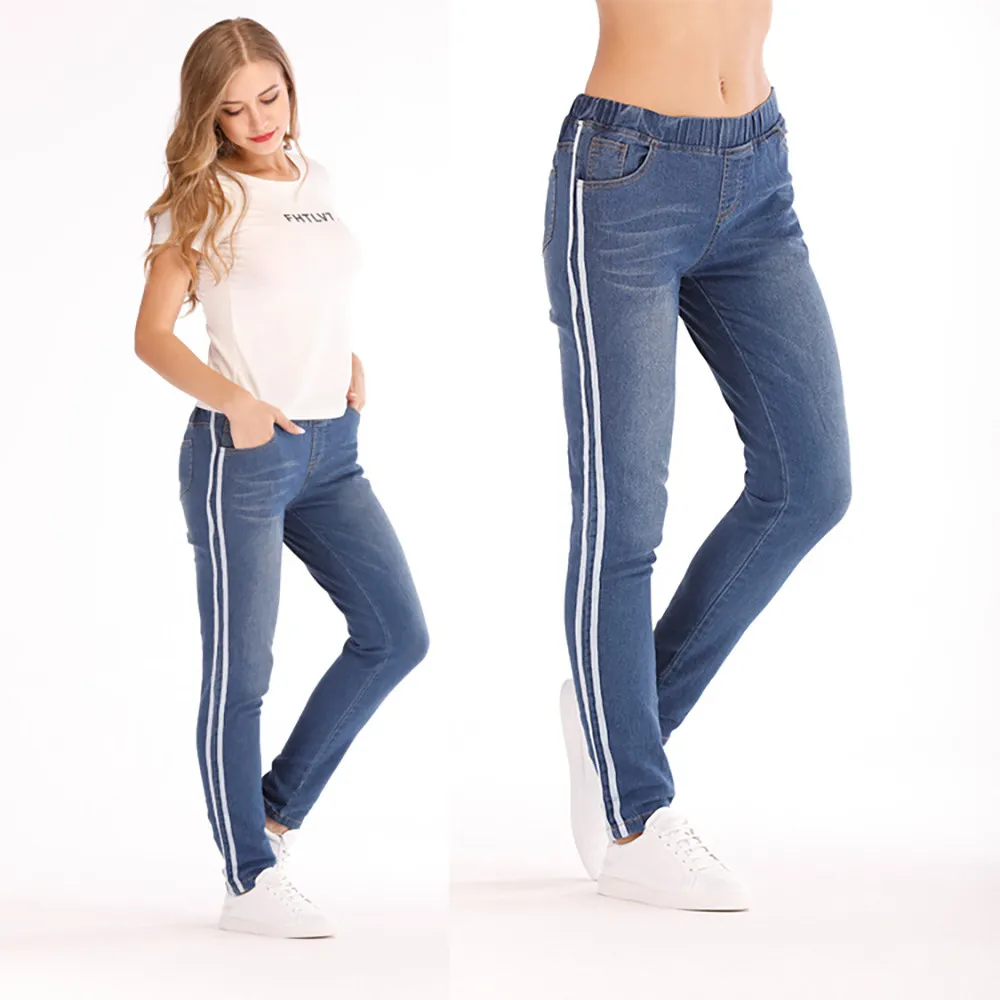 Женские джинсы с эластичной резинкой на талии JAYCOSIN, повседневные обтягивающие джинсы с карманами и лентой