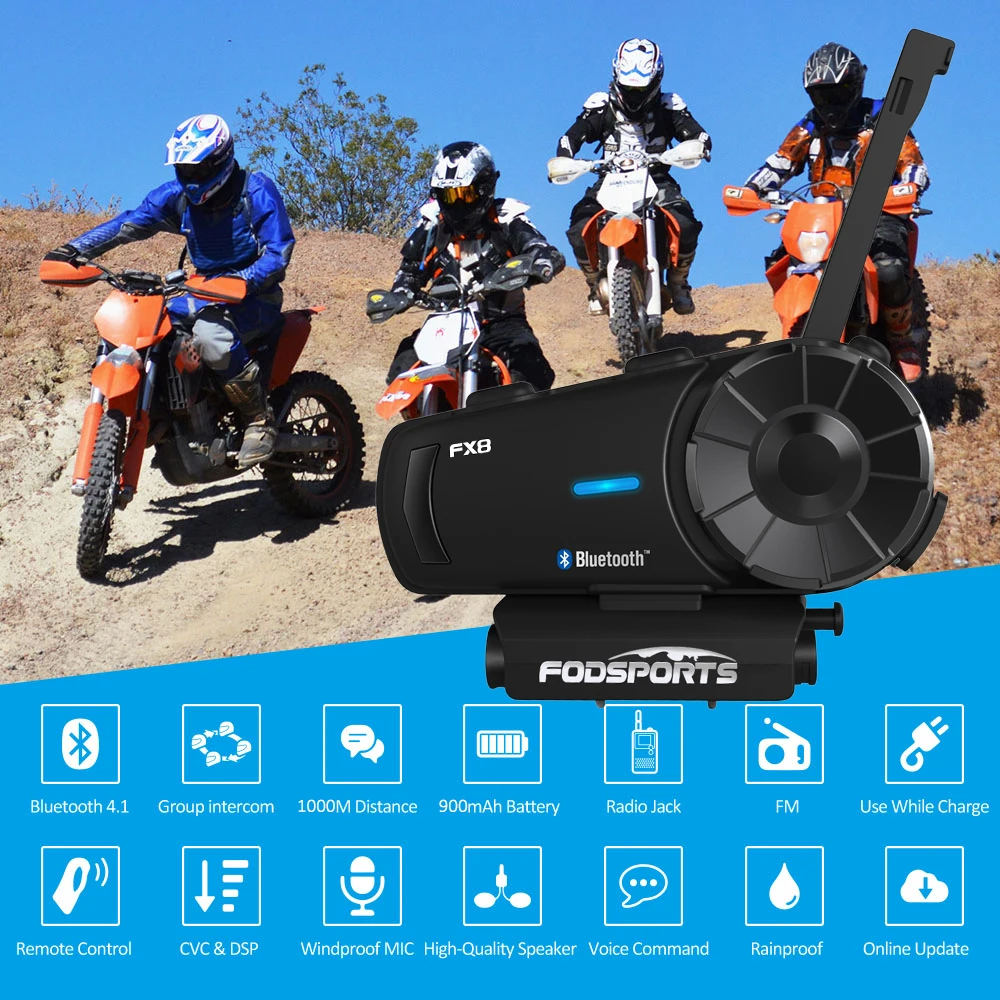 Поскольку Fodsports FX8 Bluetooth домофон работает по технологии Bluetooth 4,1, он позволяет сопрягать со всеми инструментами с поддержкой Bluetooth. Таким образом, когда вы соединяете эту мотоциклетную bluetooth-гарнитуру с другим устройством, вы получаете доступ к функциям, таким как: