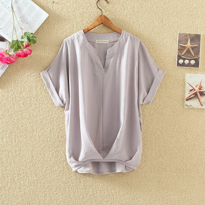 Женская шифоновая блузка с коротким рукавом «летучая мышь», Повседневная белая и красная Свободная блузка с v-образным вырезом, лето 2019