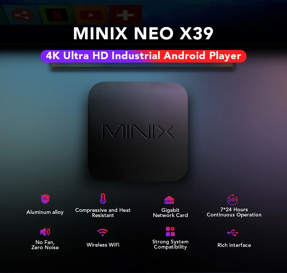 MINIX NEO X39 промышленный 4K Ultra HD Android плеер mit 4 Гб DDR4 RAM und 32 Гб Festspeicher