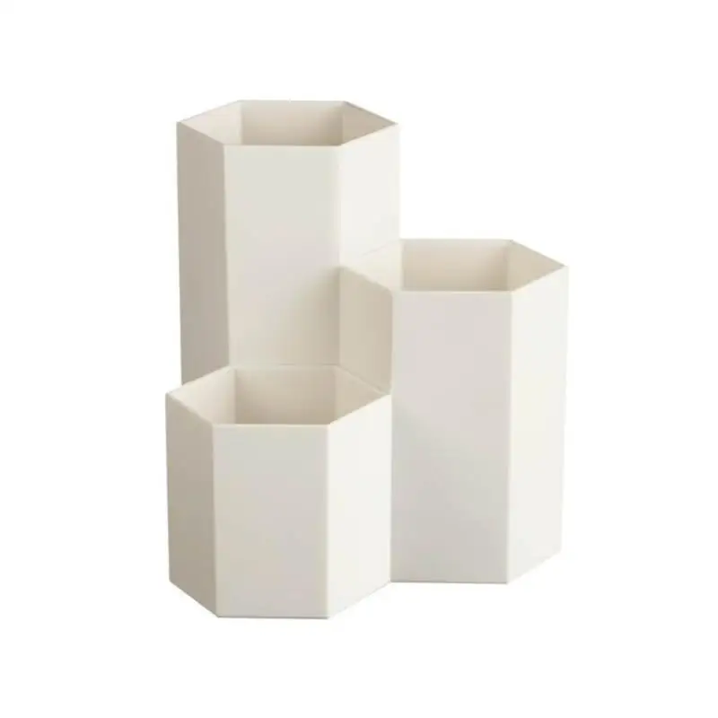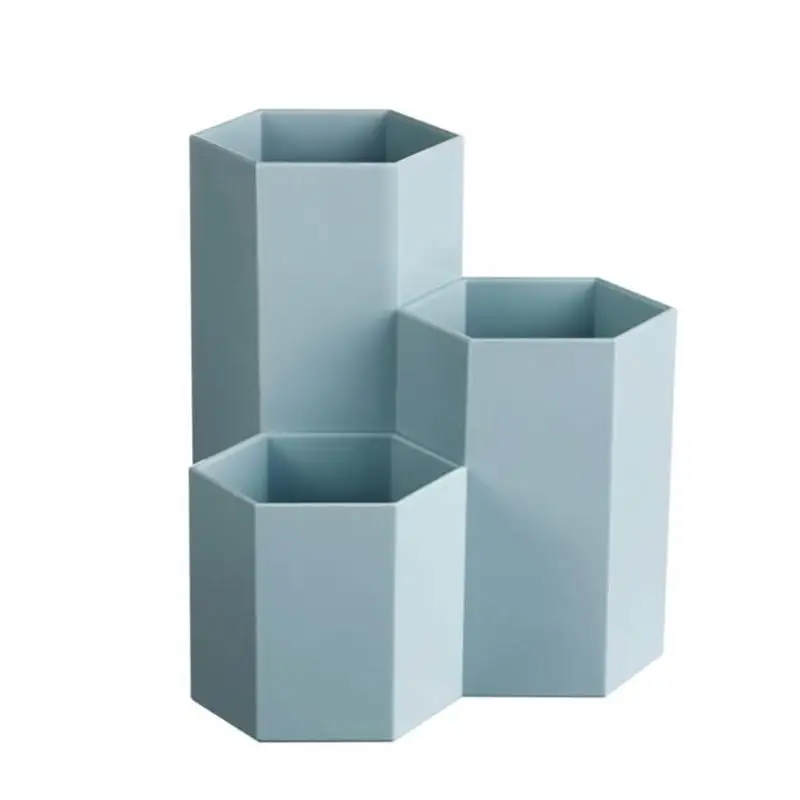 Features: 1. High and low, the level is clear. 2. 3 cylinders in one, classified and orderly. High tube: Suitable for storing long brushes Middle tube: Can put brush or other Short tube: Can accommodate beauty eggs, nail polish, etc. 3. PS material, sturdy and durable. 4. Hexagonal design, texture storage. Specification: Material: PS Color: Pink, Lake Blue, White Size: 120x110x80mm/4.72x4.33x3.15in Notes: 1. Due to the different monitor and light effect, the actual color of the item might be slightly different from the color showed on the pictures. Thank you! 2. Please allow 1-3cm measuring deviation due to manual measurement.
