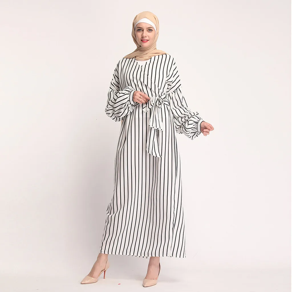 Мусульманское женское скромное Макси-платье, абайя, Турция, в полоску, длинный халат, кафтан, одежда