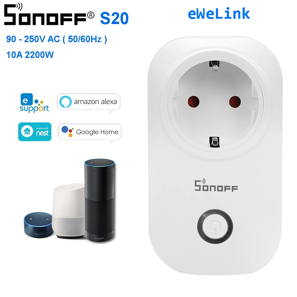 Умная розетка SONOFF S20 с Wi-Fi, беспроводное приложение, дистанционное управление, умная домашняя розетка, таймер, переключатель для Google Home, штепсельная вилка европейского стандарта