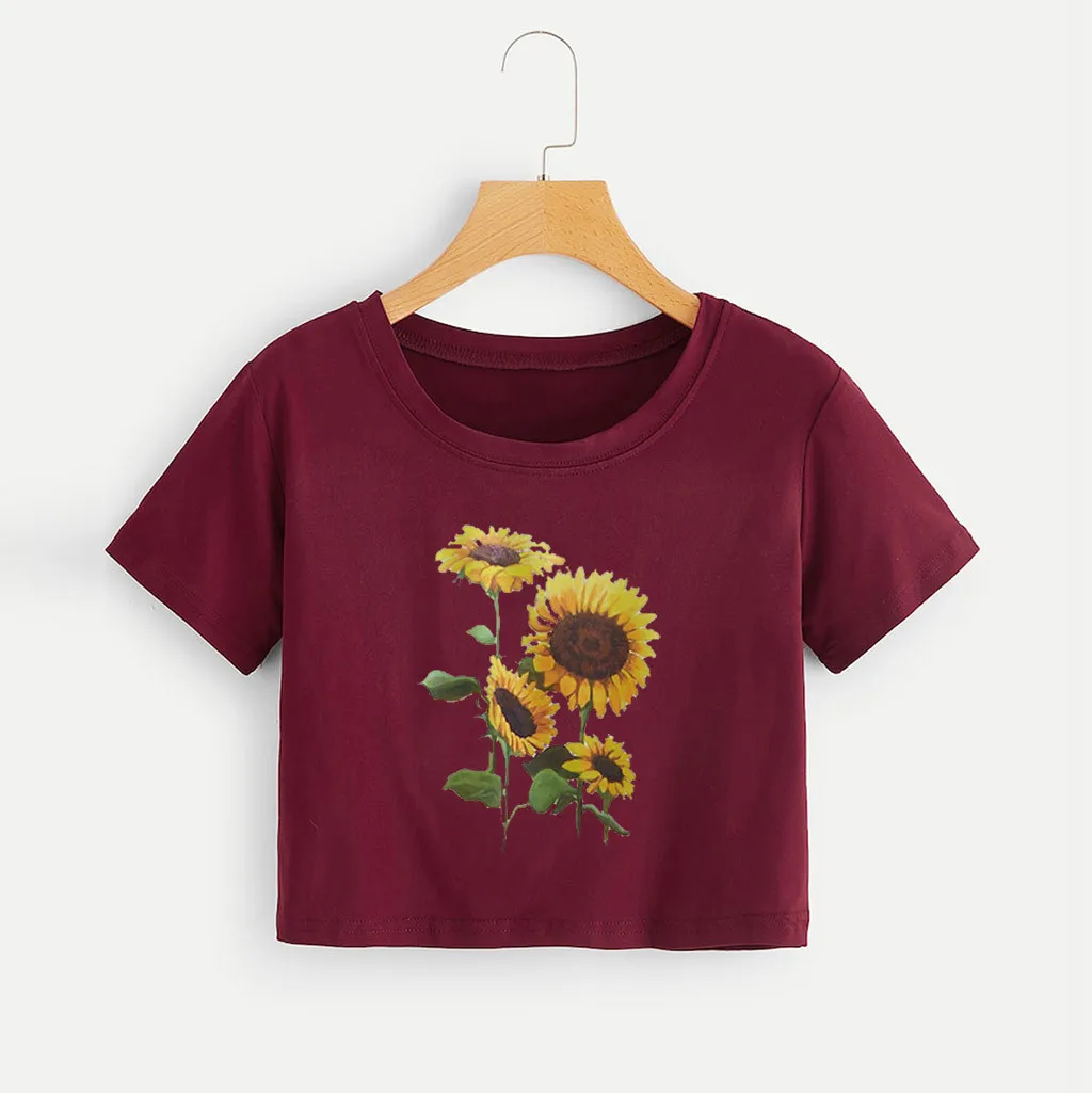 Женская Повседневная короткая блузка с цветочным принтом, сексуальные женские топы, Пляжная модная футболка