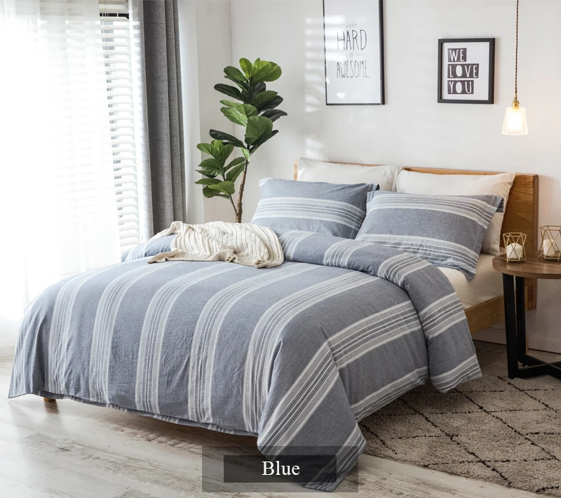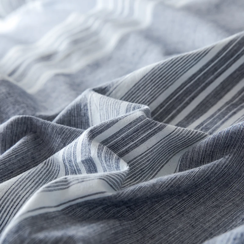 100% cotton yarn dyed blue and white different yarns mixed to create textured effect, adding hand feel and decoration. Naturally wrinkle-resistant cotton won't fade and becomes softer after each wash.