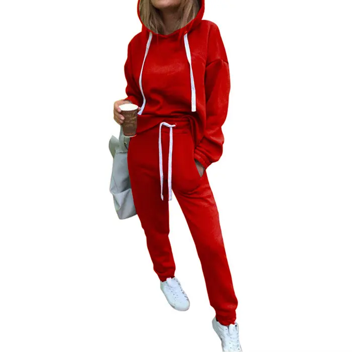 Красный спортивный костюм, Синяя толстовка, спортивные штаны, комплект, ансамбль, Femme, комплект из 2 предметов, хаки, зимние повседневные брюки, костюм, толстовка с капюшоном и шнурком для женщин