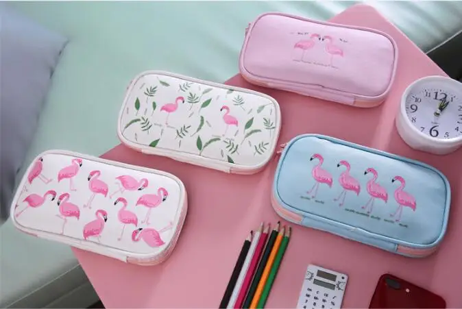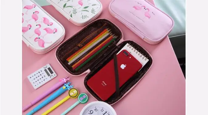 1pc Flamingo PU Zipper Multi-Function Stationery Box Student Large-Capacity Pencil Bag Children'S Storage Pencil Bag School Supplies