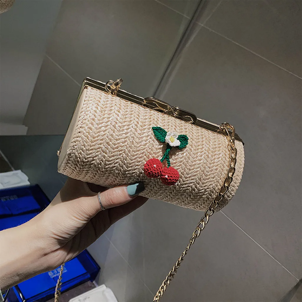 Модная женская сумка на цепочке, плетеная сумка-мессенджер с фруктами, сумка через плечо, Сумка с ручками