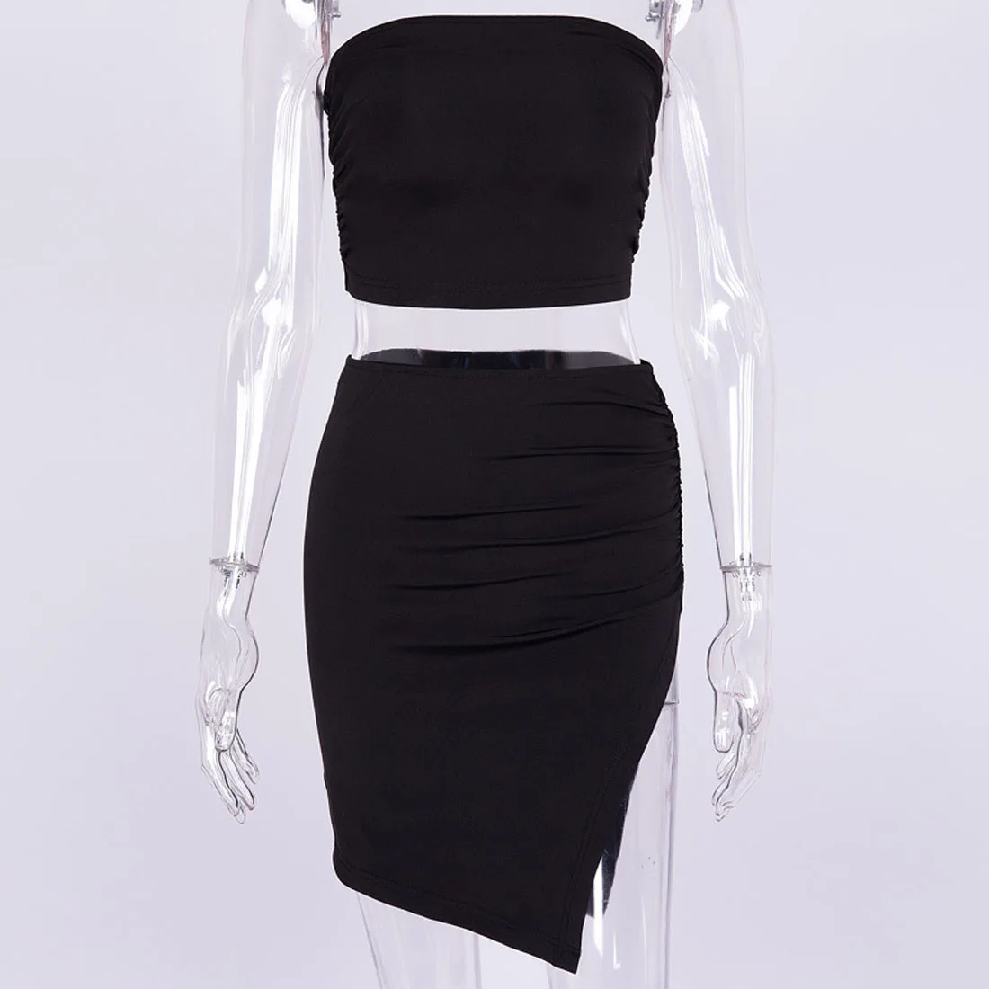 Женский сексуальный облегающий укороченный топ + юбка, комплект одежды из 2 предметов! Высокое качество и новый 100% Основной Цвет: как на фотографии Новый в моде Материал:ПолиэстерПосылка включает в себя:1 укороченный топ + 1 юбка Размеры диаграмма: