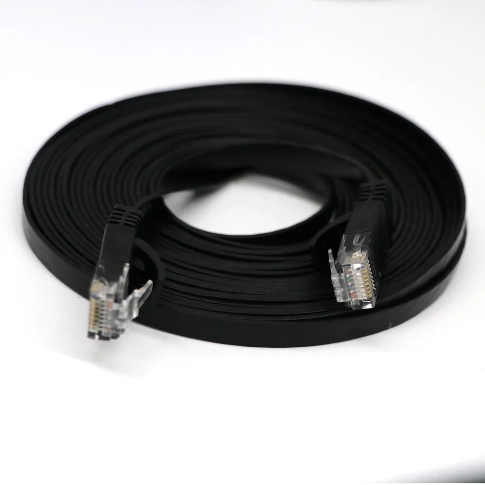 - При толщине всего 1 мм плоские сетевые кабели Ethernet Cat 6 идеально маскируются под коврами, стенками или даже за мебелью.