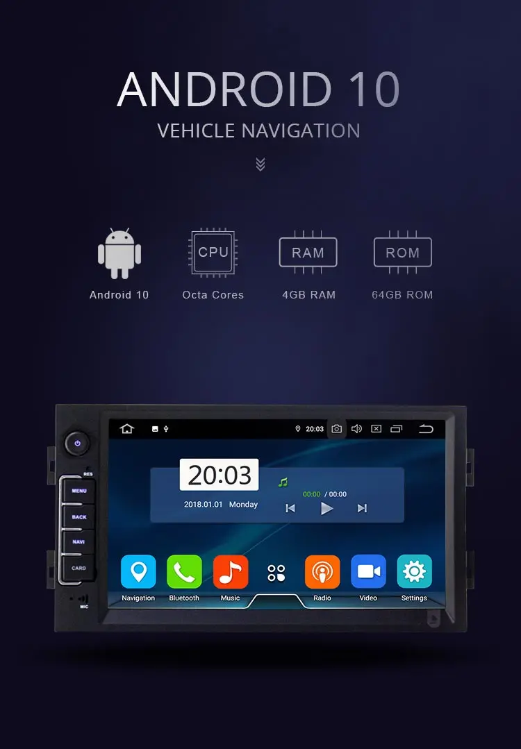 -Android 10,0Операционная система. Система Android и система транспортного средства интегрируют гармонию-64 битOcta-ядерCortex-A531,5 ГБ, DDR3 4 ГБ, 64 ГБВнутренняя память-Усилитель IC:7851, радио IC:NXP TEF6686-7 дюймов многоточечный емкостный сенсорный экран, HD1024*600Разрешение дисплея.-Поддержка расширенной медиа-карты/GPS карты/2 USB палки-Встроенный WiFi,Поддержка точки доступа Wi-Fi.-Поддержка4G/3G интернет, Необходимо подключить дополнительный usb-ключ, пожалуйста, купите его у нас.-Дисплей главного меню «сделай сам»: вы можете перетаскивать Панель поиска, настройки прогноза погоды, музыку/Радио/BT-стерео плеер, приложения или другие закладки в главном меню для отображения-DIY обои из галереи-Встроенное зеркало.Он может подключаться к Iphone через точки доступа Wi-Fi и подключаться к Android мобильный телефон через usb-кабель и точку доступа Wi-Fi. Мобильный телефон будет отображать изображение на DVD, а также музыку, видео, игру. Для мобильного телефона Android сенсорный экран DVD может управлять мобильным телефоном. (Обратите внимание: он может поддерживать часть мобильного телефона Android, не все из них)-Поддержка онлайн навигации Google Maps.-Поддержка мультимедийного плеера Android, Он может воспроизводить музыку/Кино/фото с местного диска или подключенной tf-карты.-Онлайн развлечения, поддержка онлайн-видео, ТВ, кино, музыки, радио, Youtube, Yahoo, MSN...-Онлайн-связь, поддерживает связь через WeChat, Twitter, Facebook, Gtalk, Gmail и другие услуги-Поддержка чтения и редактирования официального программного обеспечения, WORD/EXCEL/POWERPOINT/PDF/TXT.-Поддержка Google Play Store, Вы можете скачать тысячи приложений здесь, и вы можете вниз много популярных игр, таких как фруктовый ниндзя, кормить конфеты, Angry Birds, Fieldrunner, speed forge 3D...-Поддержка 3D-игр, HD видео, 1080P, H.264, DIVX форматов изображений в реальном времени-Поддержка HD видео до 1920*1080 пикселей, фото до 4096*4096 пикселей-Поддержка функции Bluetooth hands-free, Встроенный микрофон-Поддержка Bluetooth A2DP, Может воспроизводить стерео музыку через Bluetooth с вашего телефона-Загрузите функцию телефонной книги, вы можете загрузить контактную информацию с вашего телефона на этот блок-Поддержка новейшего поиска телефонной книги, вы можете найти и найти контактного члена в загруженной телефонной книге, просто введите первую букву имени, Вы найдете некоторые соответствующие имена, затем вы можете выбрать правильный-Радио тюнер с RDS, 30 предустановленных радиостанций (FM: 3*6, AM: 2*6)-Поддержка камеры заднего видаВходное и обратное пусковое управление-Встроенная Автомобильная DVR система, Просто подключите к usb-камере, чтобы использовать функцию автомобильной записи. Записи будут сохранены в gps-карте автоматически, и вы можете воспроизводить сохраненные записи непосредственно на этом устройстве.-Поддержка DVB-T T2/MPEG2/MPEG4/ISDB-T вход коробки (ТВ-бокс не входит в комплект)-Поддержка управления рулевым колесомБлагодаря этой функции вы можете пристально фокусироваться на вождении и безопасно выбирать любимую музыку на ходу. (Эта функция может работать только с автомобилем, который поддерживает аналоговый сигнал)-Поддержка OBDФункция Turque. Вы можете подключить OBD ключ. В сочетании с программным обеспечением для обнаружения транспортных средств, которое может считывать каждую дату датчика автомобиля, автоматическое определение в реальном времени, предоставление достоверных справочных данных в реальном времени для безопасности дорожн