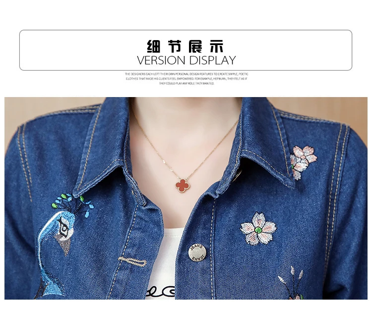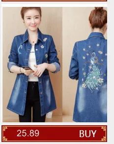 Женская джинсовая куртка #3308 Весенняя длинная с вышивкой в виде павлина