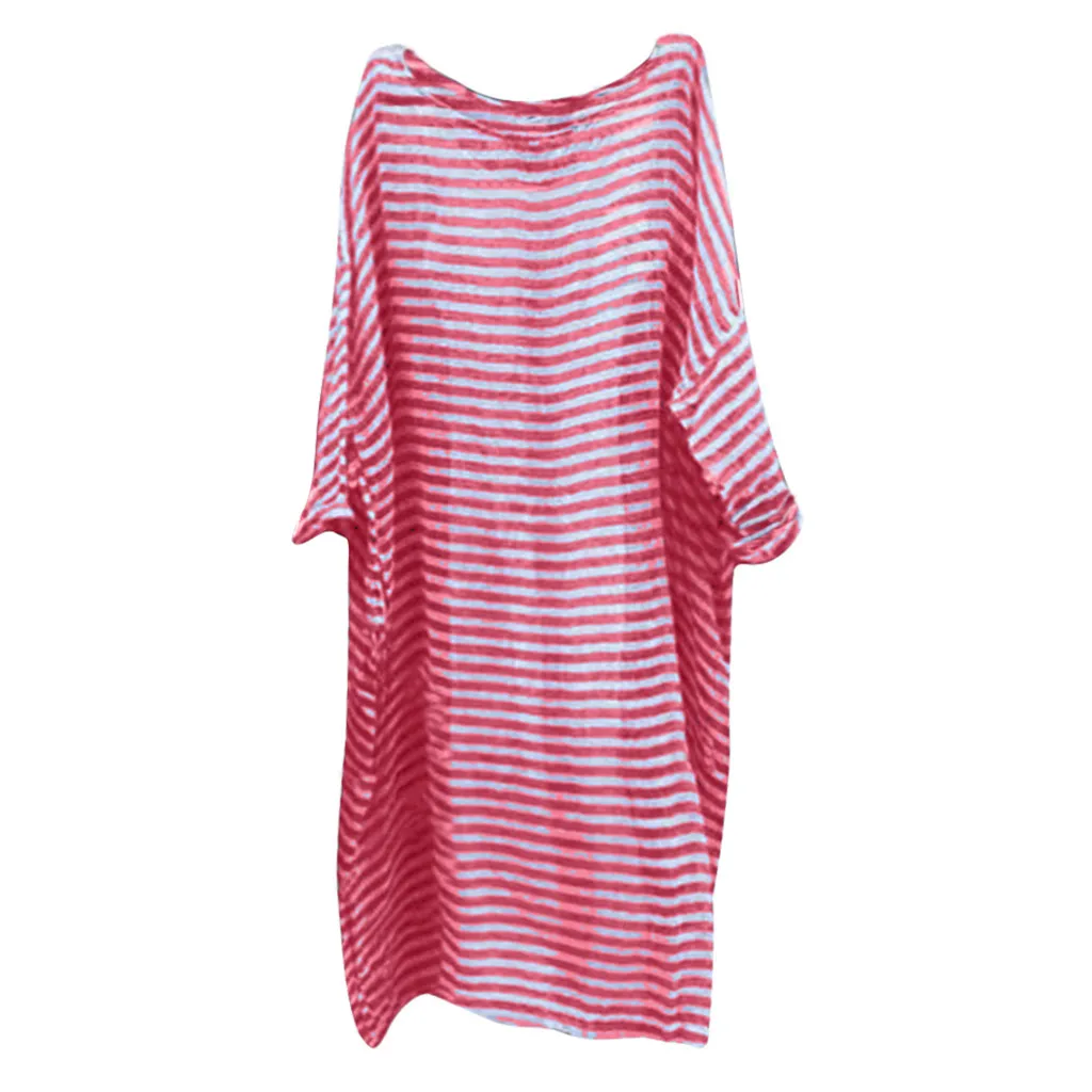 Женское льняное Свободное длинное платье большого размера с рукавами «летучая мышь» и принтом в полоску