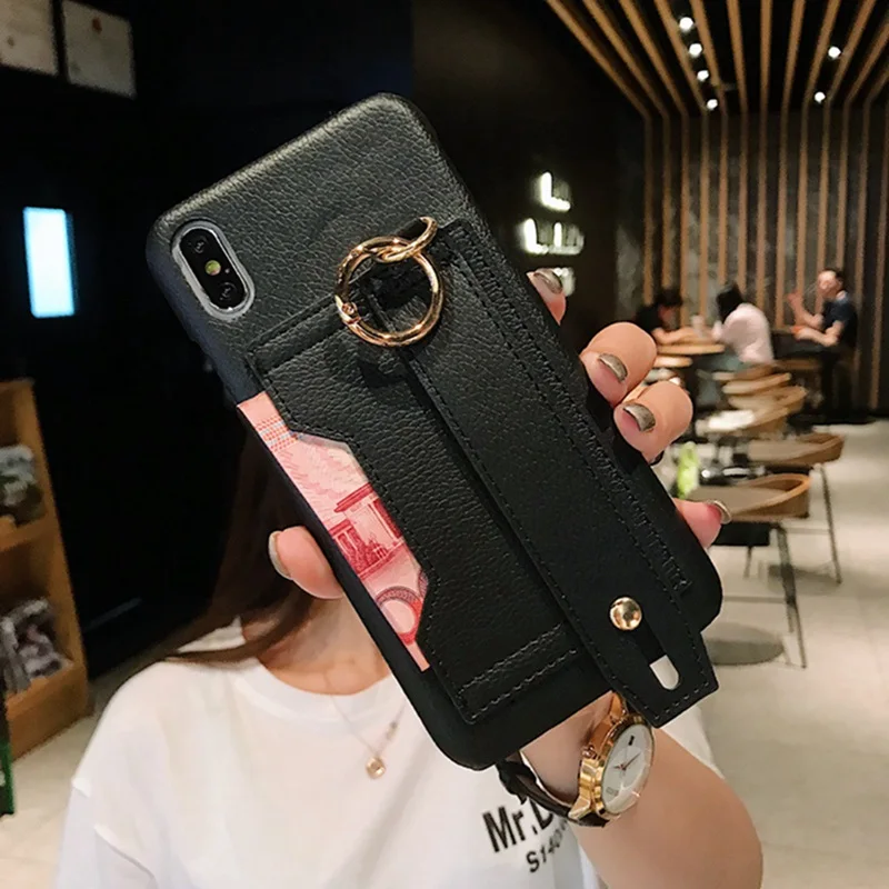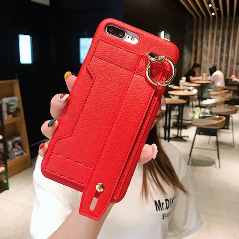 Красный кожаный ремешок на запястье, кронштейн для телефона, чехол для iphone 6 6s 7 8 Plus, черная карта, все включено, чехол XS Max XS XR X6 6S 7 8