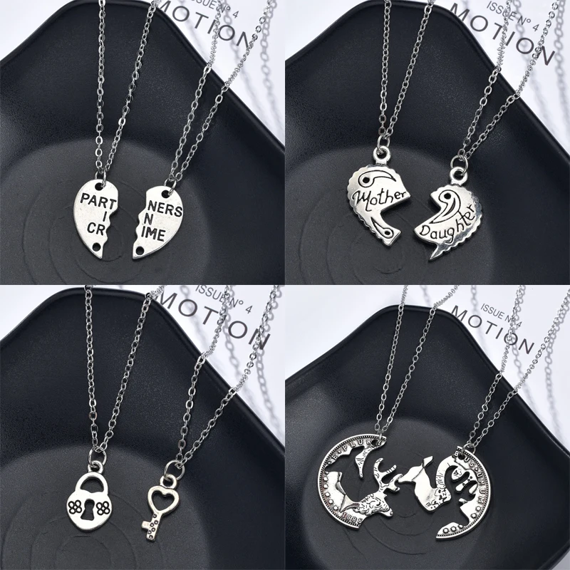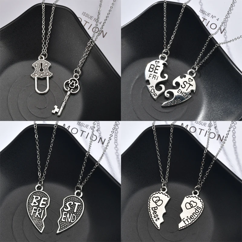 Уникальные лучшие друзья полые сердца Ключ ожерелье для женщин Два съемные ожерелья дружба навсегда чокер серебряная цепь