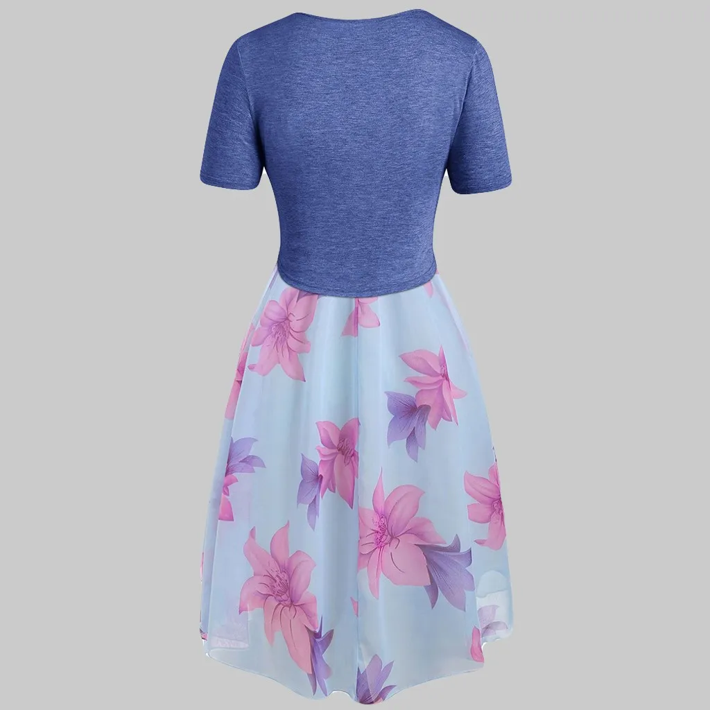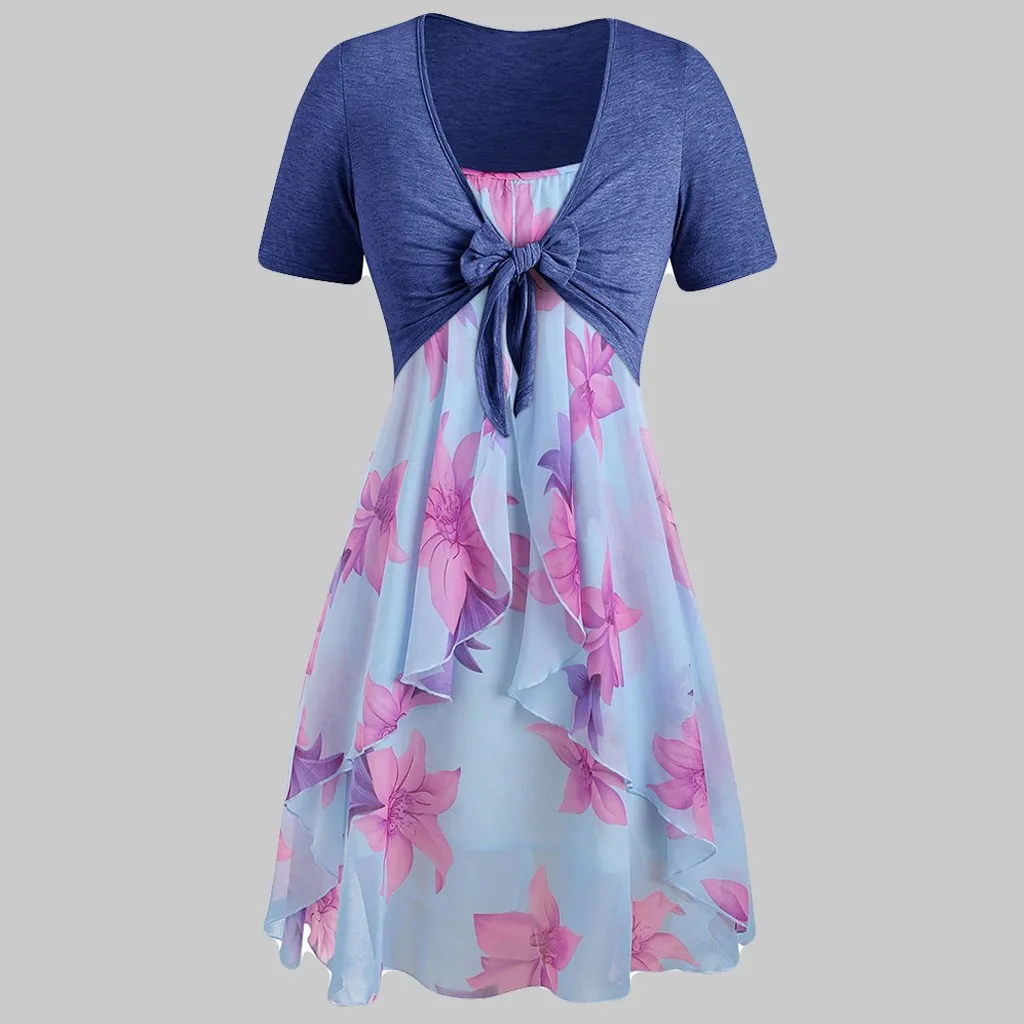 Топ с короткими рукавами и бантиком большого размера и шифоновое платье с цветочным рисунком, подходит для вашего живота и бедер. Это красиво и мило, что делает вас более стильным и изящным, сексуальным и очаровательным.