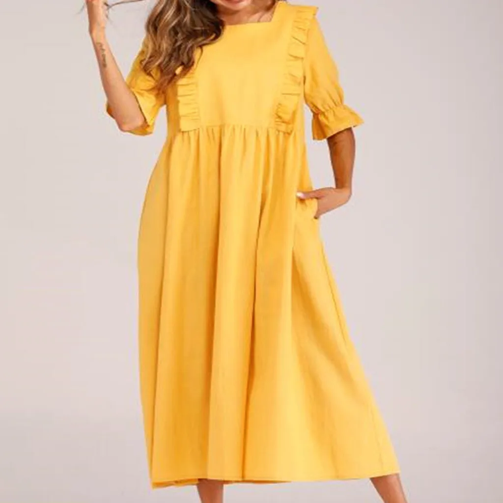 Женское хлопковое льняное однотонное платье с коротким рукавом, свободное платье большого размера