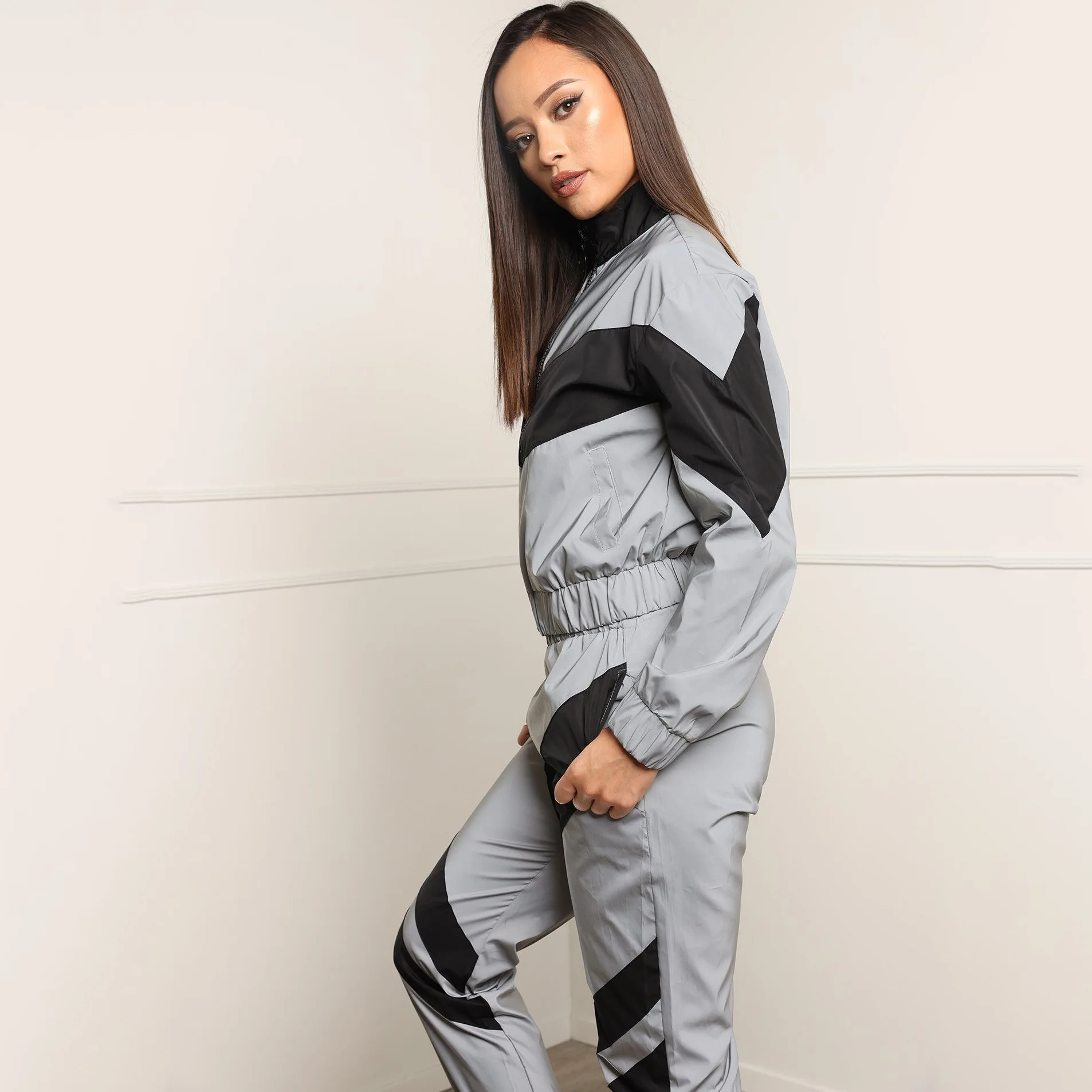 Спортивный костюм женский из светоотражающей ткани: ветровка и штаны|Спортивные
