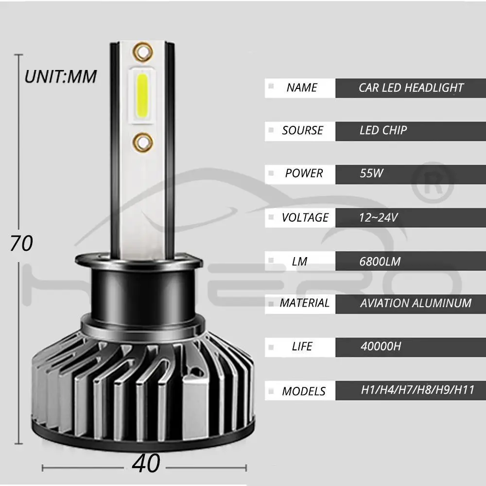 H11/H8/H9: Одиночный луч (72 Вт/комплект, 36 Вт/лампа)