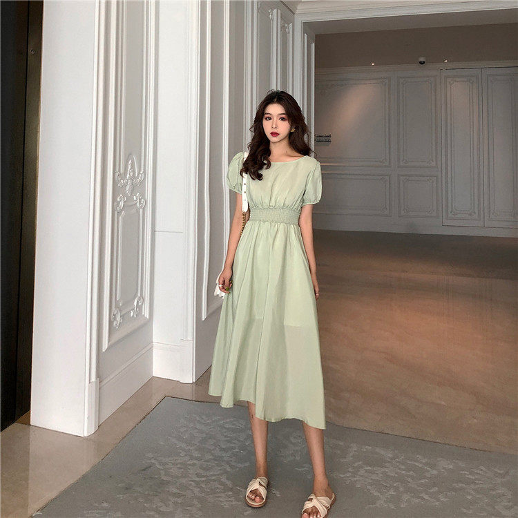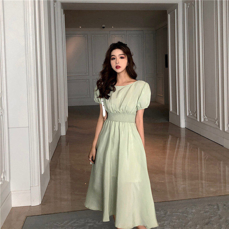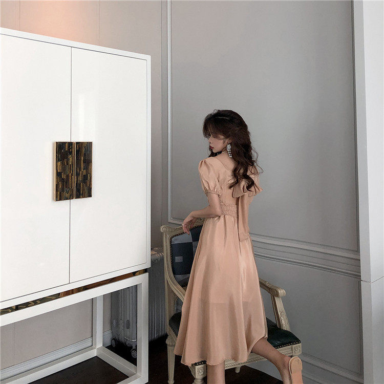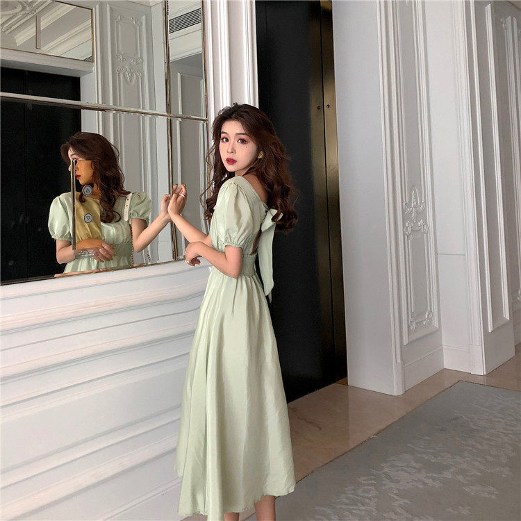 2 цвета, летнее платье, 2019, французский стиль, одноцветное, с бантом сзади, короткий рукав, винтажное длинное платье для женщин