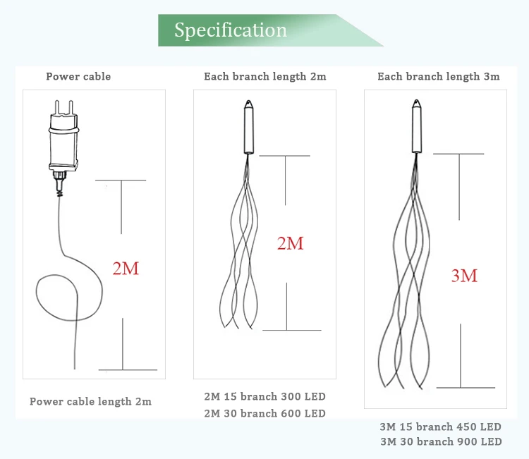 Спецификация: 2 м 15 ветка 300LED