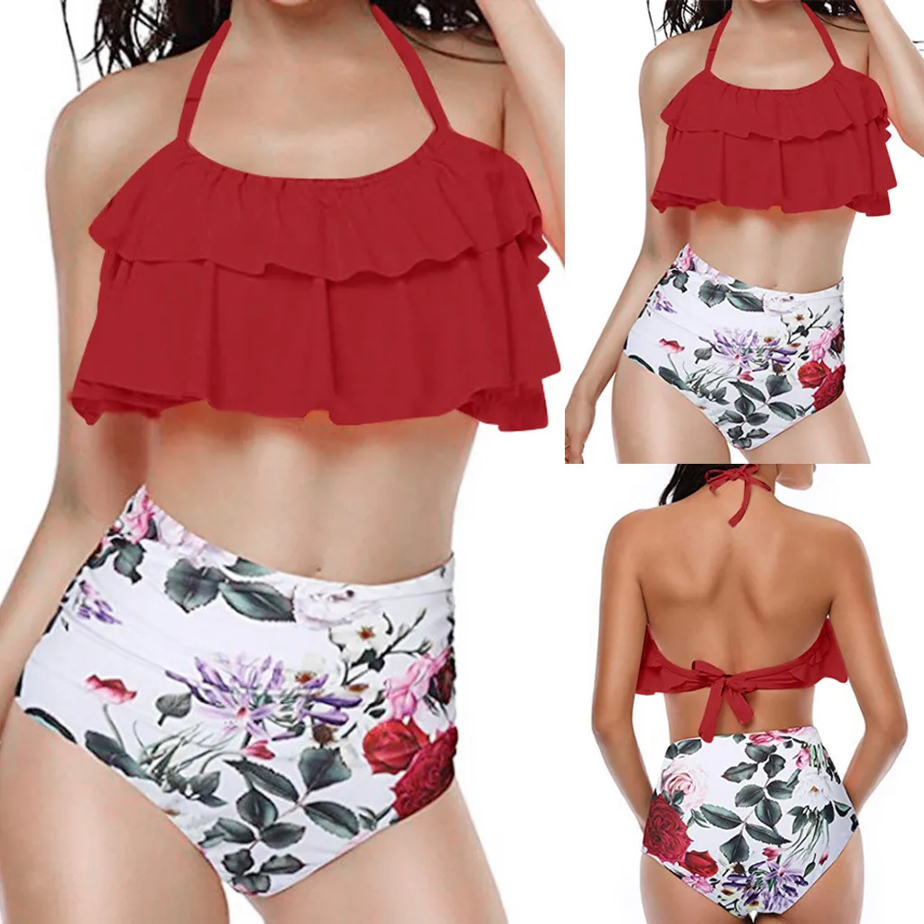 Женский летний комплект из двух предметов с открытой спиной, пляжный купальник с принтом